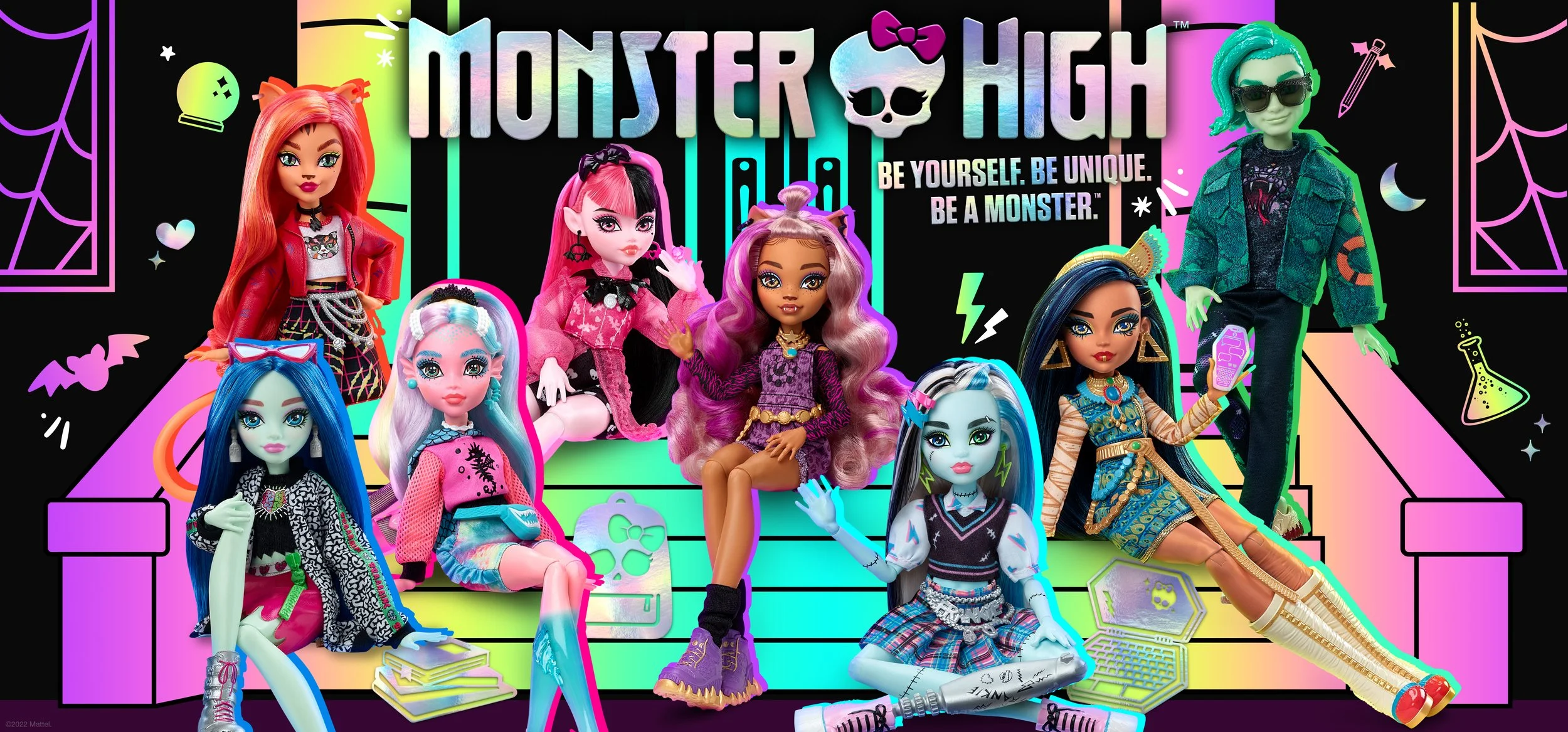 In 2025, we updated the Student branding, pushing it to feel edgier, more modern & to connect directly with the consumer. By drawing inspiration from print & zine culture, we were able to harness and elevate the vibe of the Monster High brand. With updated photography style, doll posing, and graphics this rebrand acted as a catalyst to further propel the cool-factor of Monster High, to not only resonate with kid-consumers, but to also capture the attention of adults by disrupting the aesthetic of the doll toy aisle.