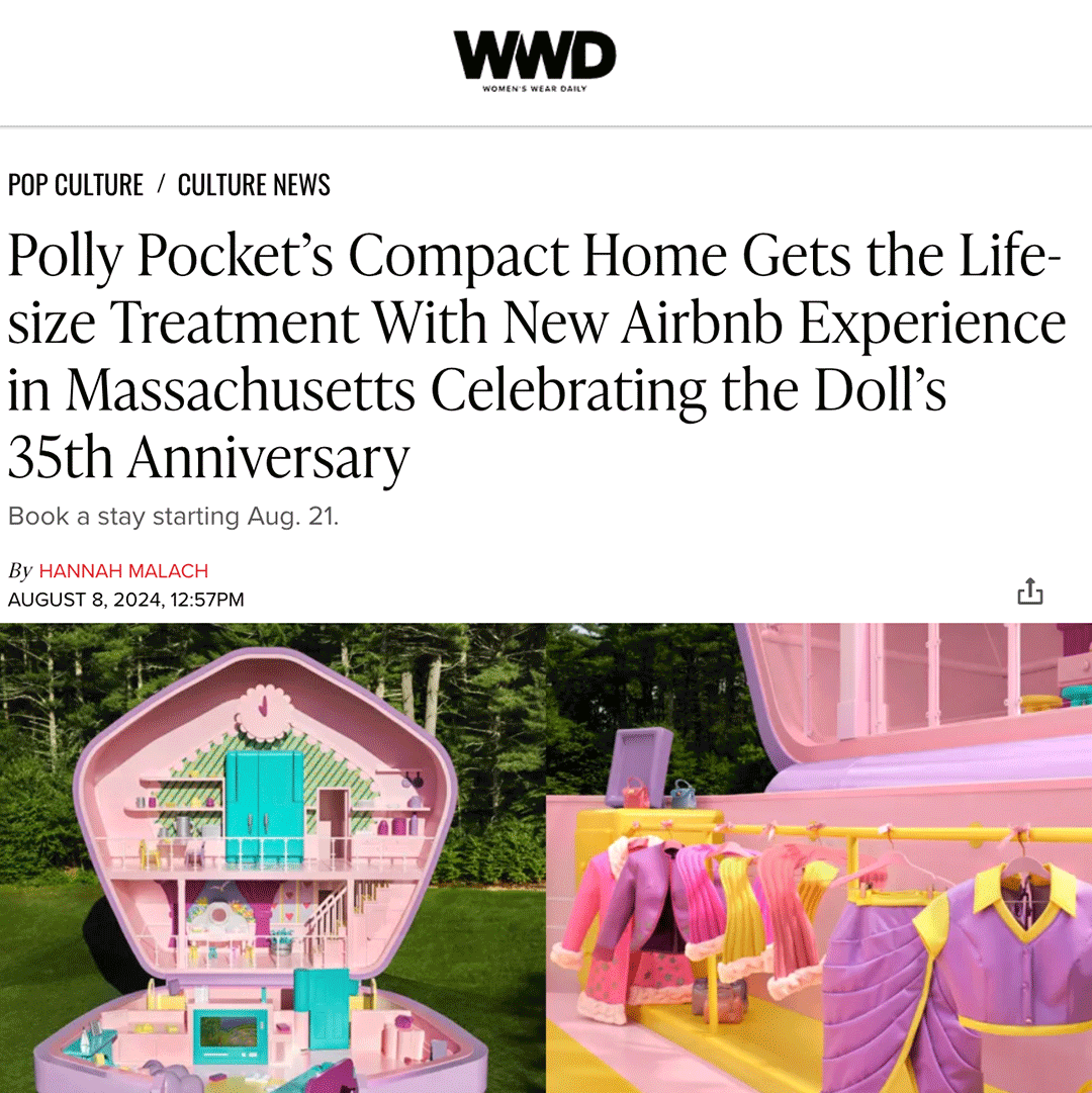 IMPACT: This iconic collab ended up being central to Polly Pocket’s 35th anniversary campaign—which included fashion and beauty collaborations, global events, and a major presence at San Diego Comic-Con—and earned a 2024 Toy of the Year® Awards (TOTY®) nomination for License of the Year. It generated 249M+ media impressions in its first week from outlets including Conde Nast Traveler, Teen Vogue, Designboom, Fortune, Billboard, People, WWD, Travel + Leisure, Apartment Therapy, TimeOut, CBS, and TMZ. As part of the campaign's cultural resonance, WWD highlighted Polly Pocket’s enduring appeal and the emergence of the “Polly Pocketcore” aesthetic, cementing the brand’s legacy while connecting with new generations.
