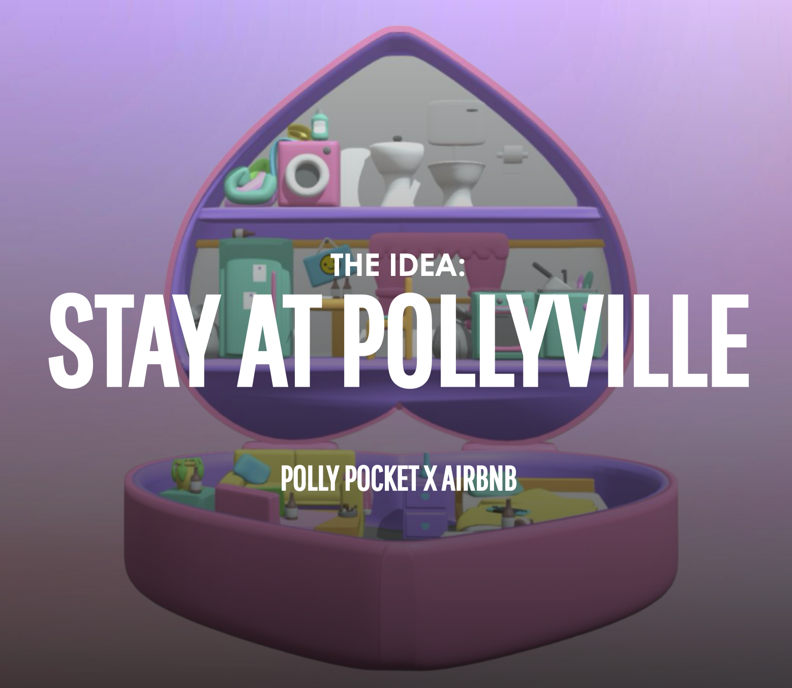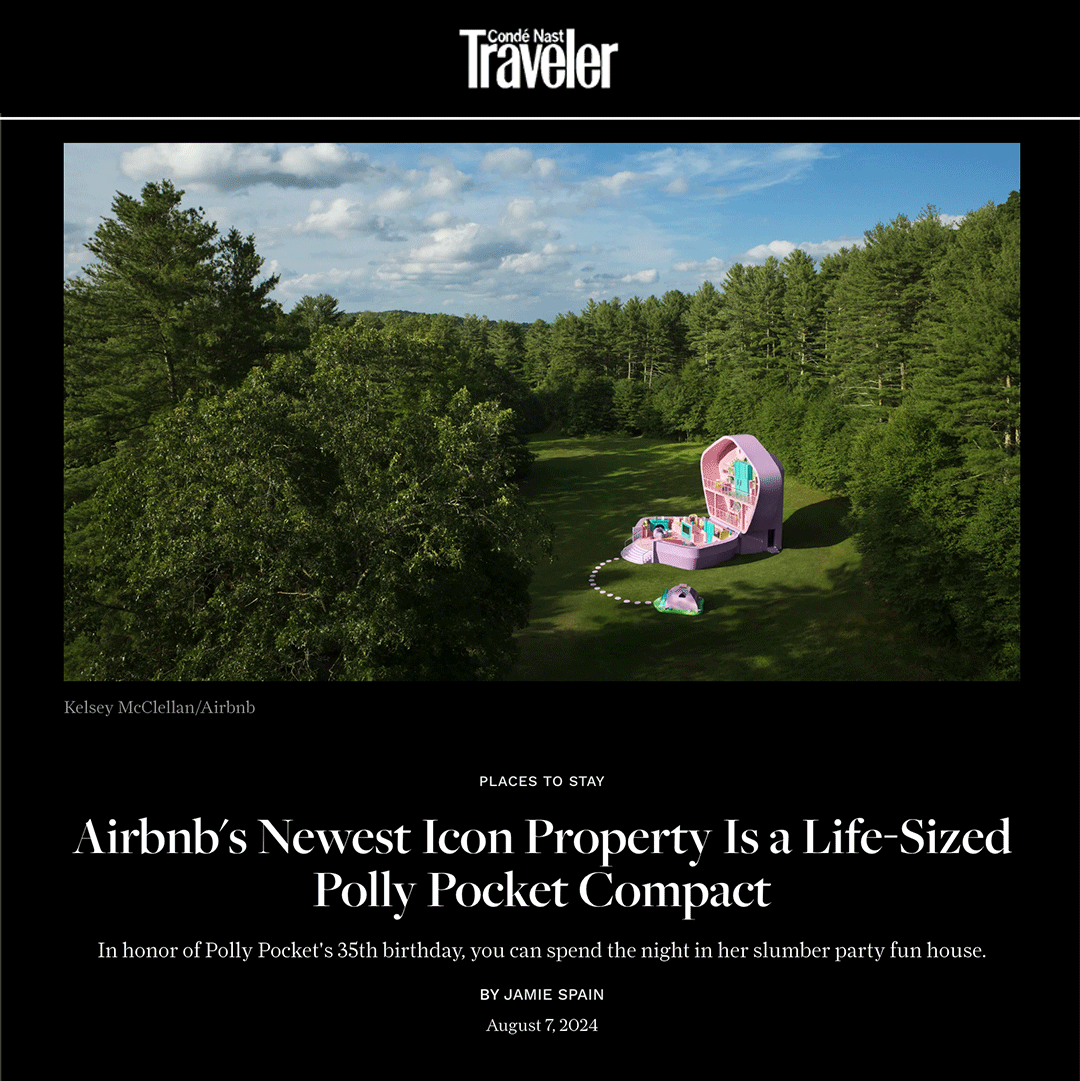 IDEA: I was the creative lead and developed the concept for the Polly Pocket x Airbnb Icon collab that reimagined the iconic ’90s Polly Pocket Slumber Party Fun compact as a bookable Airbnb experience where guests could step inside, spend the night, and see life from Polly’s micro point of view. It was brought to life in partnership with Airbnb and a multidisciplinary creative team bringing the nostalgia to life for og & new fans alike.